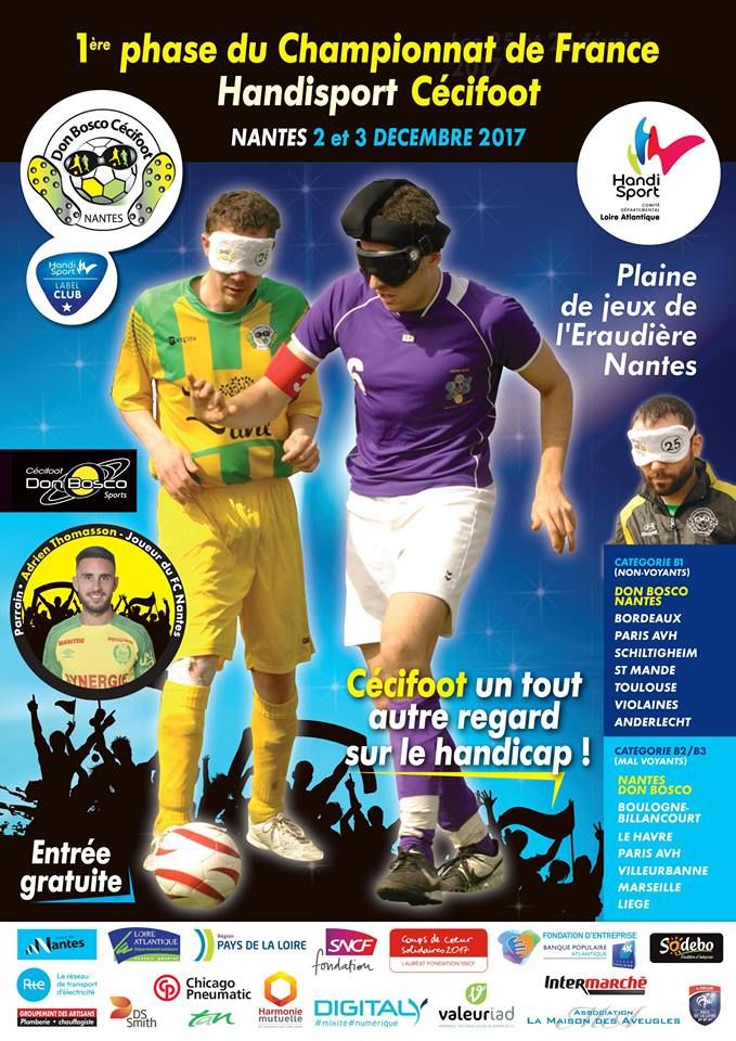 Soutenu par la Ligue de Football des Pays de la Loire, le club de Don Bosco Cécifoot accueille en effet la 1ère phase du championnat de France rassemblant des équipes des 4 coins de l’Hexagone et même de Belgique (Anderlecht, Liège). Venez nombreux samedi et dimanche matin sur la plaine de Jeux de l’Eraudière à Nantes (entrée gratuite).