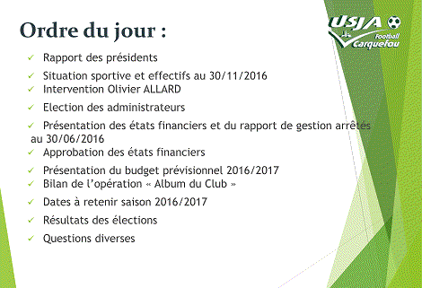 Le prochain conseil d'administration élira le bureau de l'USJA pour la saison 2016-2017.
