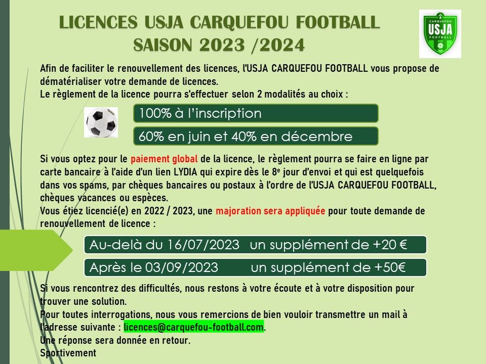 LICENCES USJA CARQUEFOU FOOTBALL 2023/2024