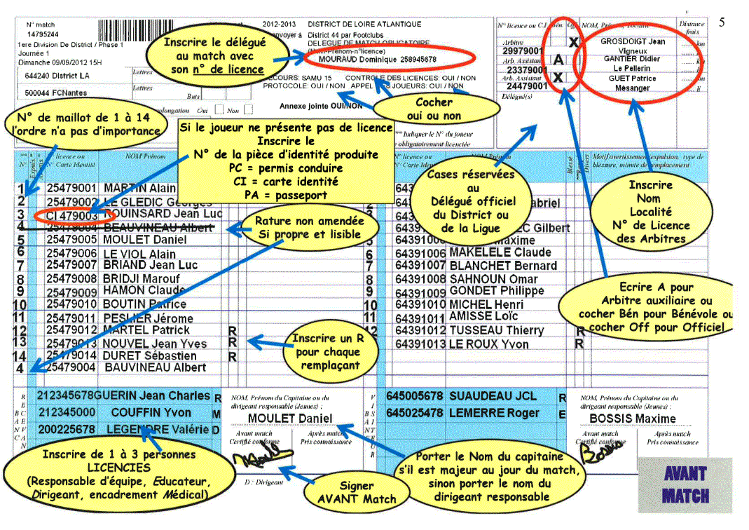 fiche d'aide sur la feuille de match